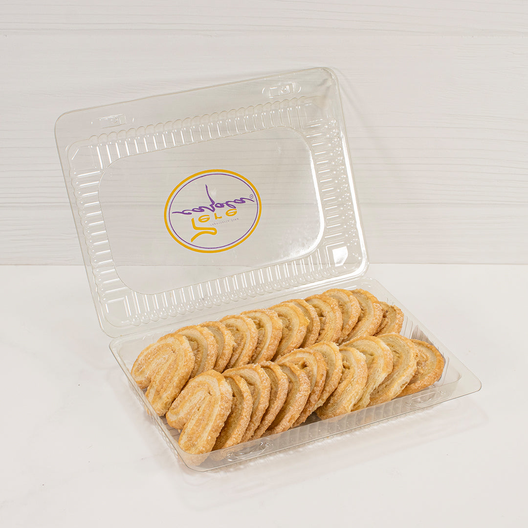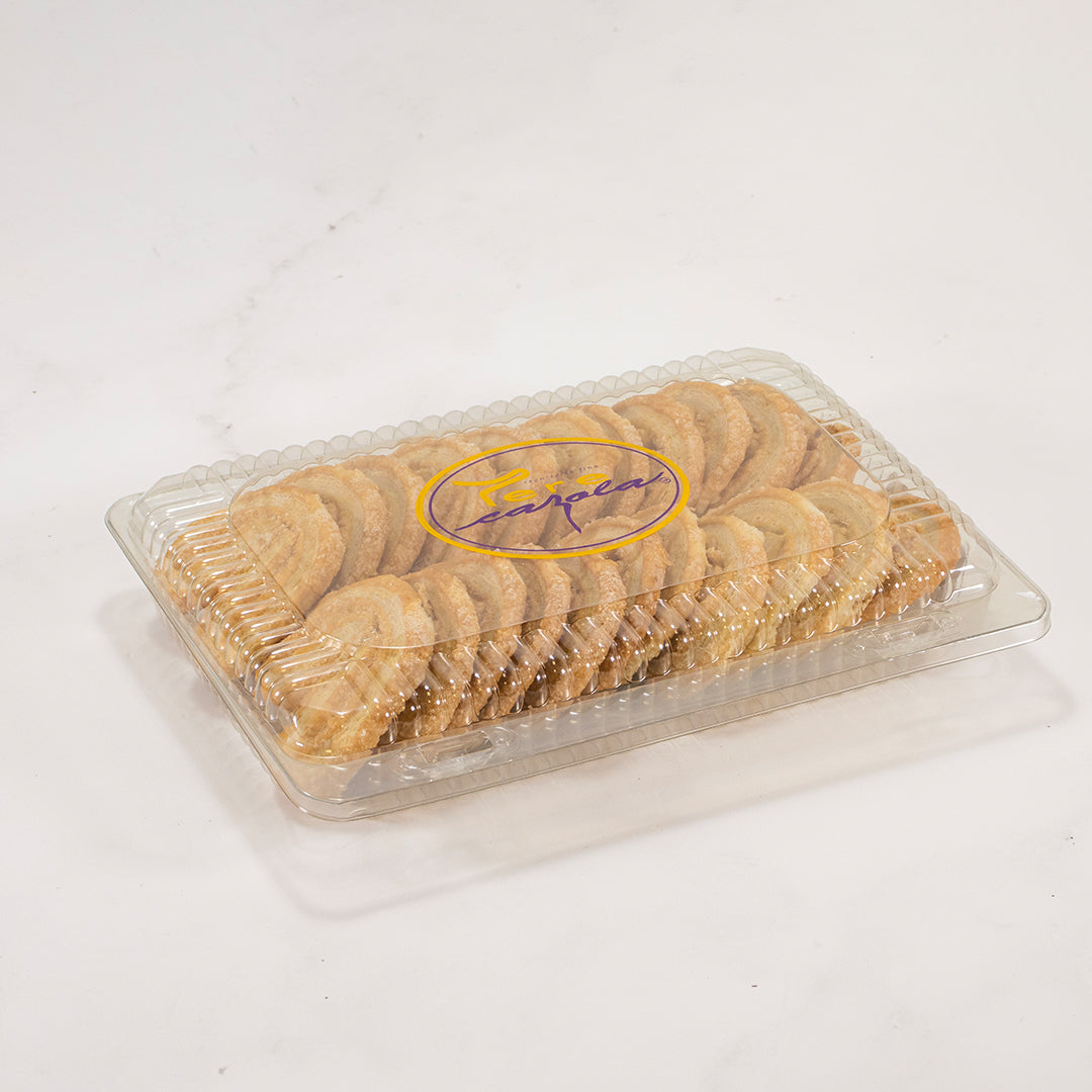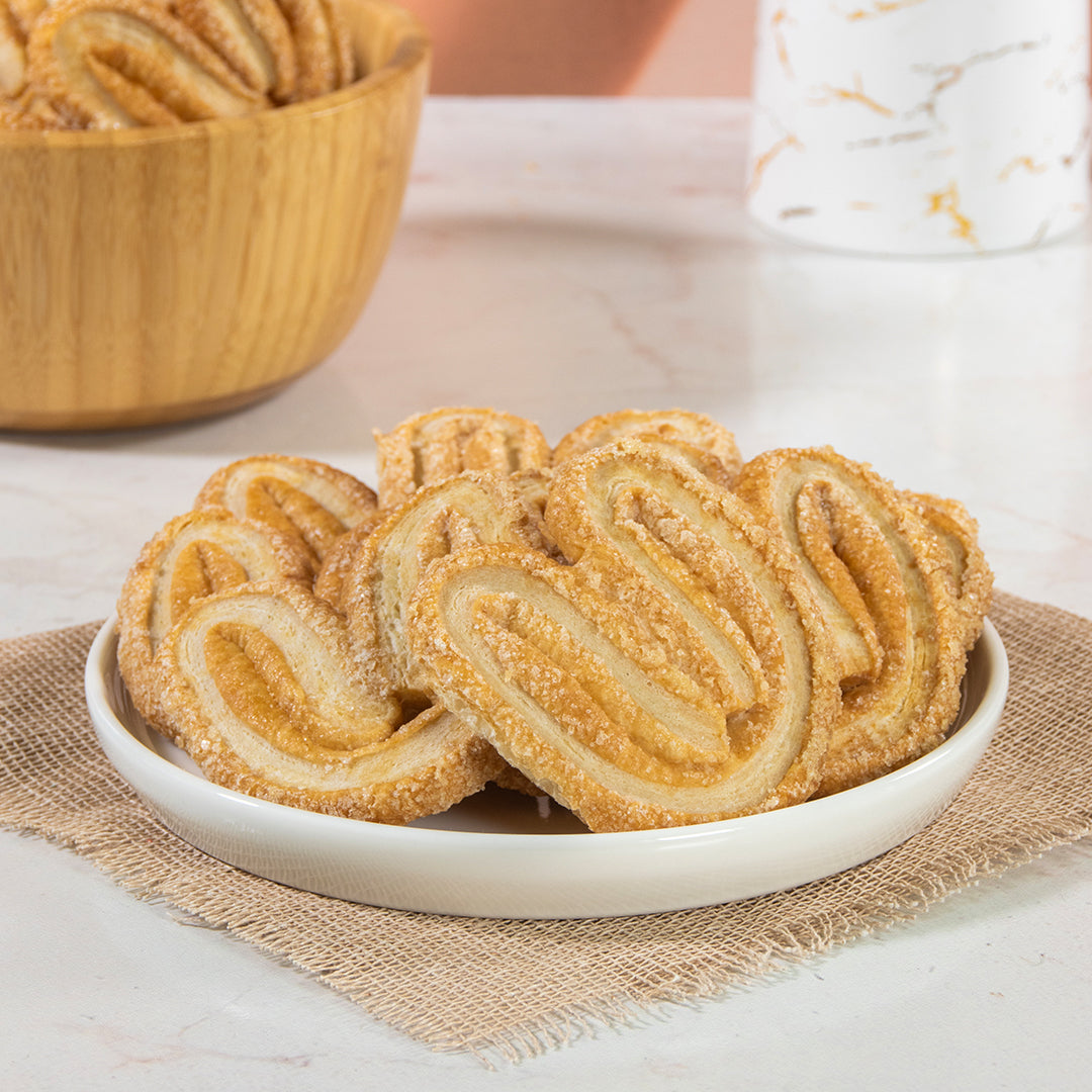 ¡Crujientes delicias! Nuestras orejitas son finas piezas de hojaldre escarchadas con azúcar, perfectas para el cafecito de la mañana. Incluye 22 piezas.
